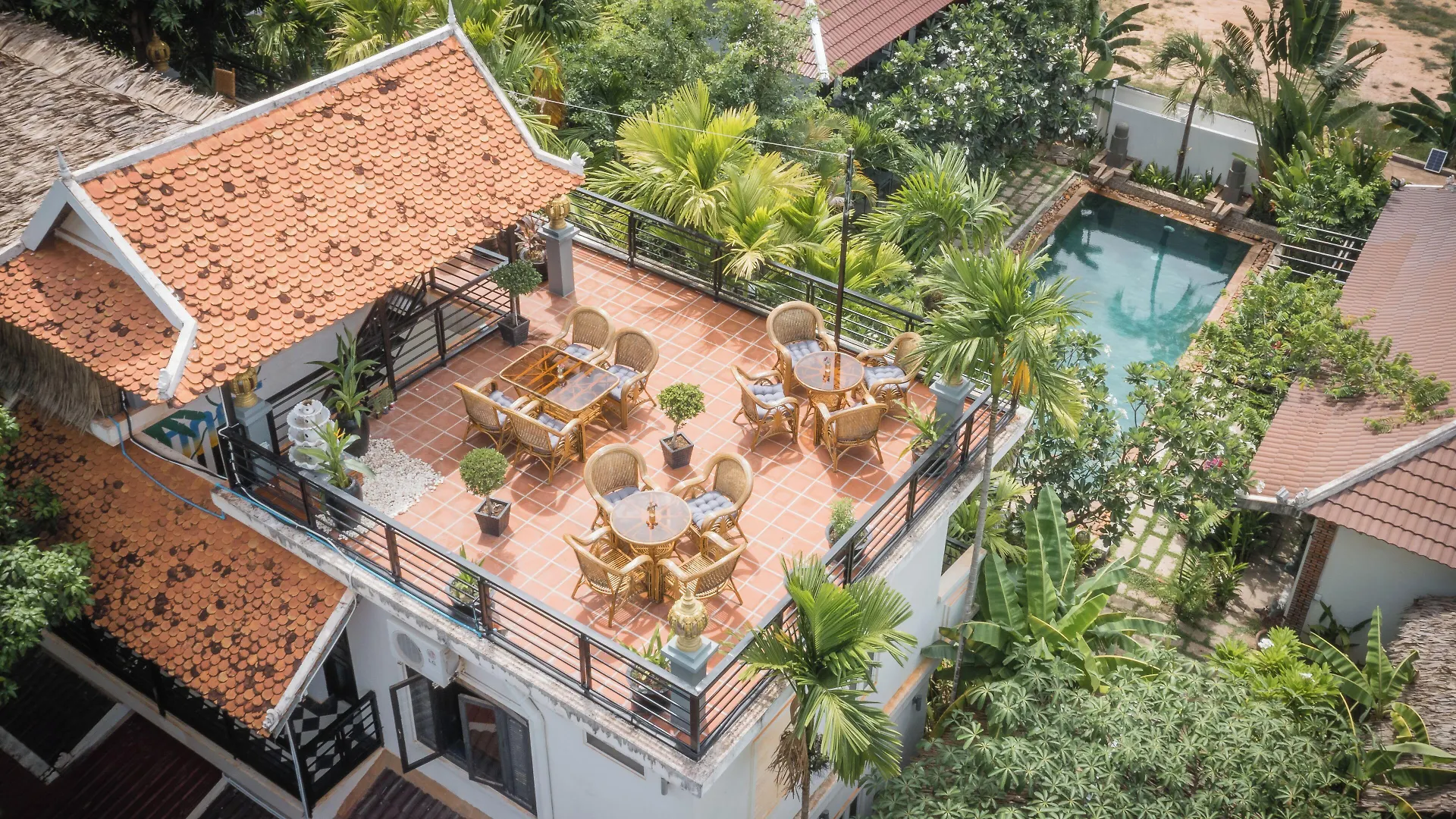 The Botanic Garden Hotel Siem Reap met 9 kamers ligt op afstand van 3 km tot de Miniatuurbeelden van de Angkortempels en biedt wifi in de hele accommodatie en parkeerplaatsen. Dit hotel bevindt zich in de Sok San Road wijk van de stad, slechts een aangename wandeling verwijderd van het Handelscentrum van Angkor, goed voor winkelliefhebbers.
